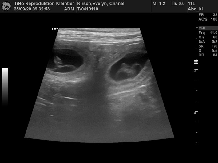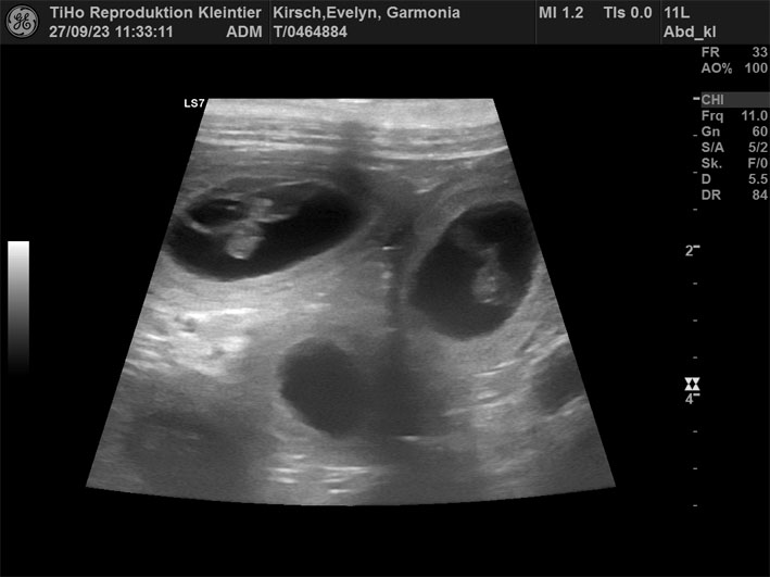 Ultraschall wo bestätigt wurde, dass sie trächtig ist. Daher freiem wir
