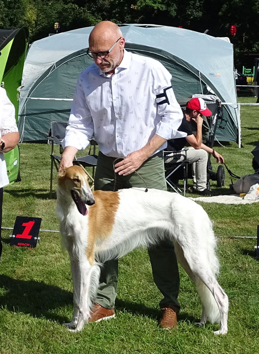 Rüde mit V1, CAC und VDH unter dem Richter Tomasz Kuszyk/PL.