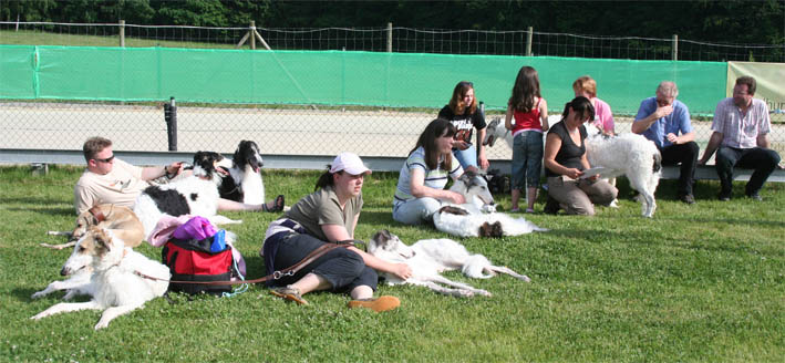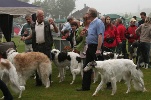 borzois meet in front of showground, to enter the show all together